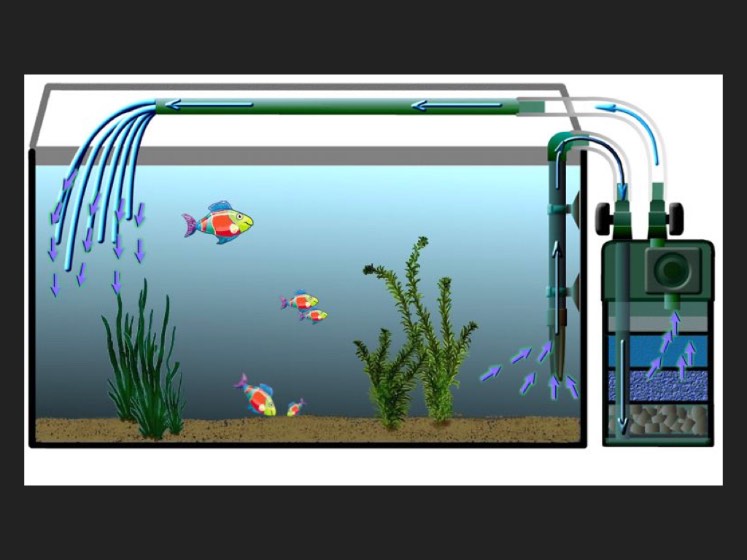 Légende : l'aquarium: organisation simple avec pompe extérieure