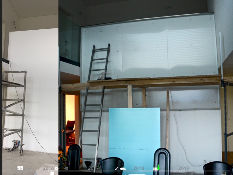 Légende : le bac PVC de récupération du mur végétal est posé